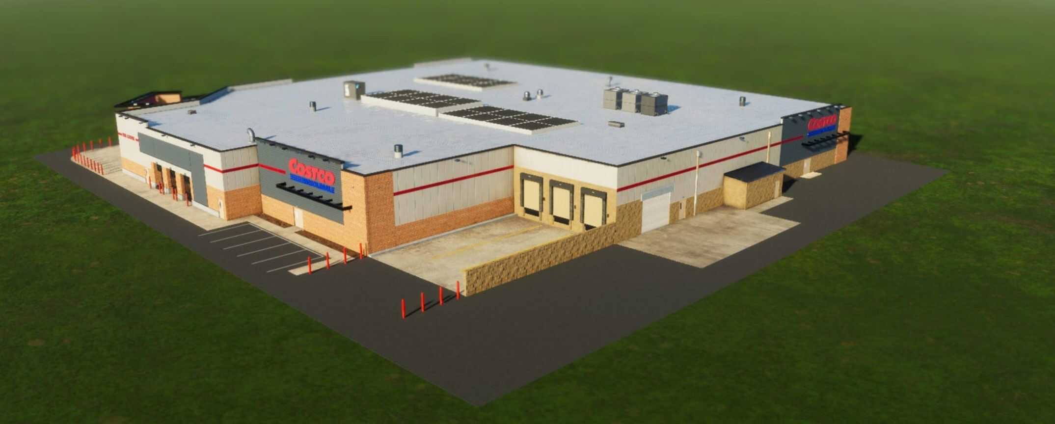 This Costco-inspired warehouse store, part of the Civic Beaver Big Box Pack, delivers a mid sized footprint to fit within smaller and larger cities. Designed to generate serious traffic flow (hope you planned those roads).